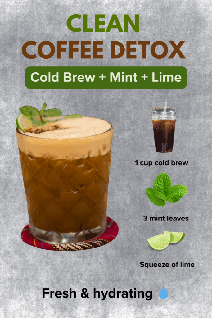 A Clean Coffee Detox is such a refreshing way to enjoy your caffeine while giving your body something that feels light, bright, and hydrating. With just cold brew, mint, and lime, you get a drink that tastes elevated but takes less than a minute to mix together. Whether you’re starting your morning or wanting a mid-day reset, this combo is a simple go-to. Save this recipe for later — and try a variation or two to find your favorite twist.